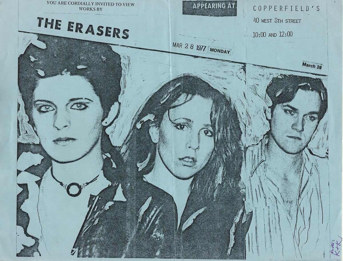 He returned to New York in 1978, and resumed performing with Erasers at C.B.G.B. and other venues. After many shows, and recording several songs for Ork Records, Erasers disbanded in 1982. He has continued to play piano and write songs, however. In 2015, Bryan Ferry recorded one of Ebony’s compositions, Gun Shaft City for Chris Spedding’s Joyland LP.